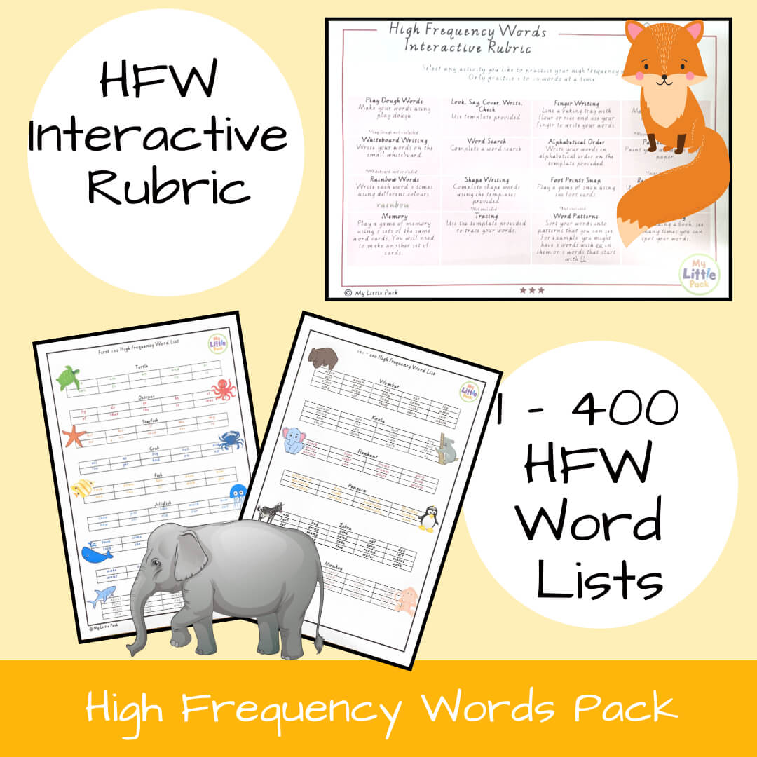 The High Frequency Words are also known as sight words. Our High Frequency Words Interactive Rubric is packed full of engaging and fun activities that can be completed multiple times. From painting words, making words with play dough, word searches, tracing words, playing card games and so much more, your child will be learning and having fun for hours.